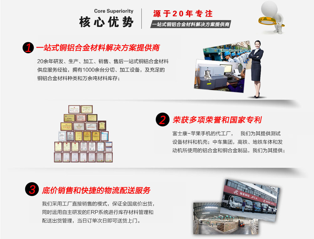 深圳市錦發(fā)銅鋁有限公司成立于1998年,注冊(cè)資金1億元人民幣,是一家國(guó)家高新技術(shù)企業(yè),榮獲廣東省著名商標(biāo)稱號(hào)。總部及生產(chǎn)基地位于深圳寶安松崗,占地面積3萬多平方。公司成立以來,一直專注于鋁材、銅材等合金材料的研發(fā)、生產(chǎn)加工及銷售。倉儲(chǔ)上萬噸銅鋁合金材料,迅速響應(yīng)客戶需求。